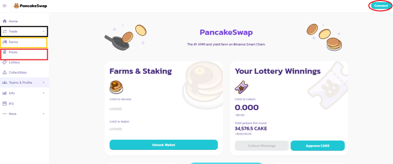* 팬케이크스왑 Fram화면 메뉴 https://exchange.pancakeswap.finance/