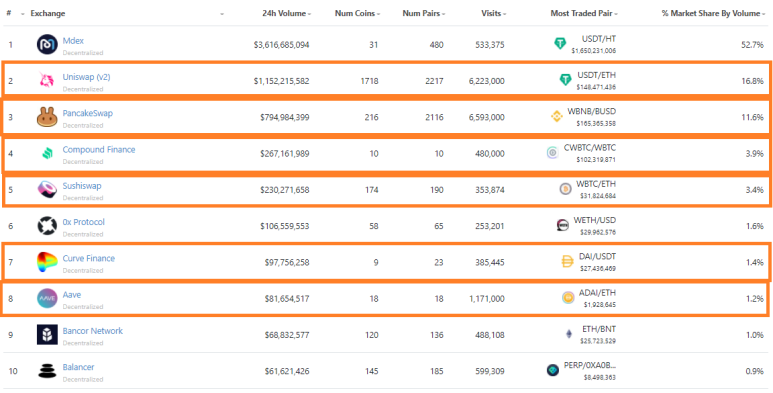 * 전체 DEX거래소 순위 https://www.coingecko.com/