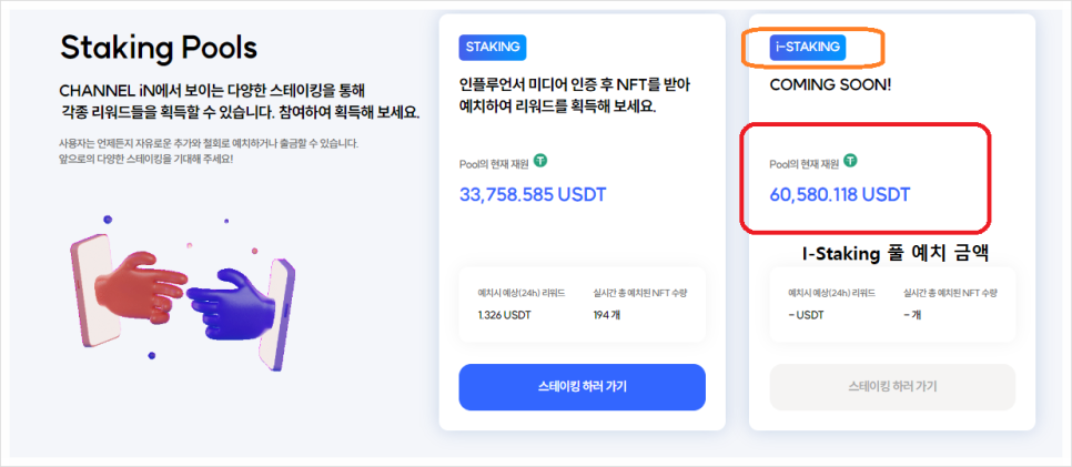 I-Staking으로 NFT 스테이킹 풀이 변동 될것입니다. I-Staking에서는 기존 수령받은 NFT로 뭔가 추가로 수익을 낼수 있는 (뭔지모름)