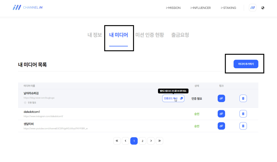 6. 내미디어에서 인증요청 클릭