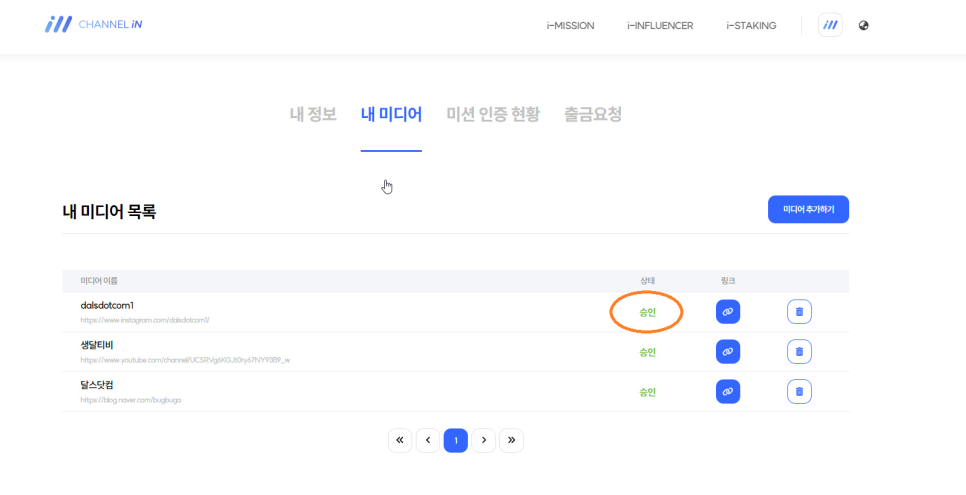 * 내미디어 신청 승인 화면