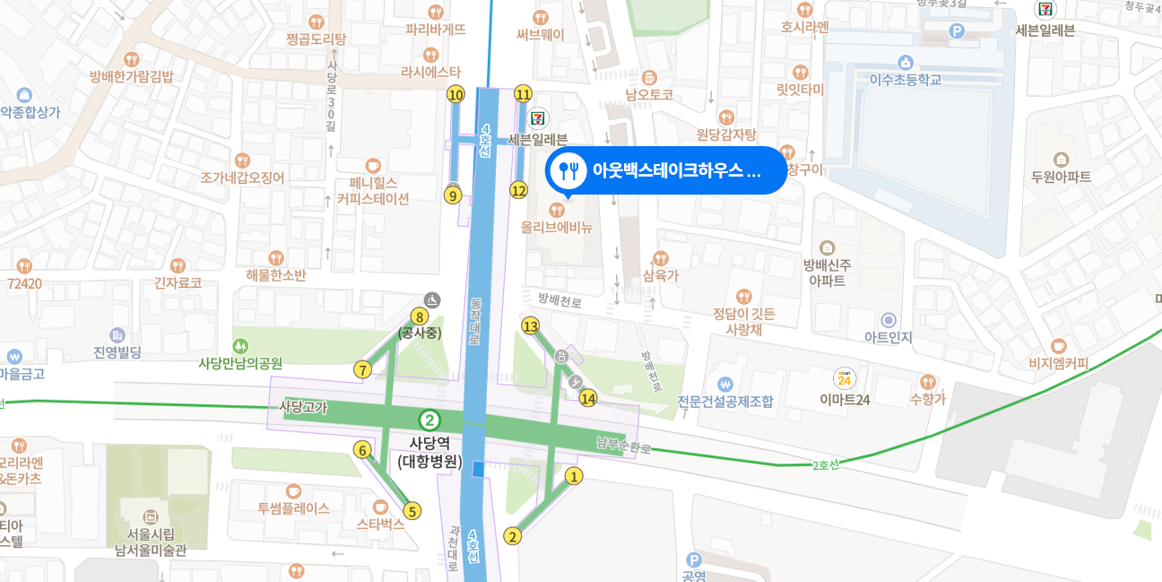 * 아웃백 사당 파스텔시티 4층, 서울 서초구 방배천로 11 파스텔시티 4층 401호