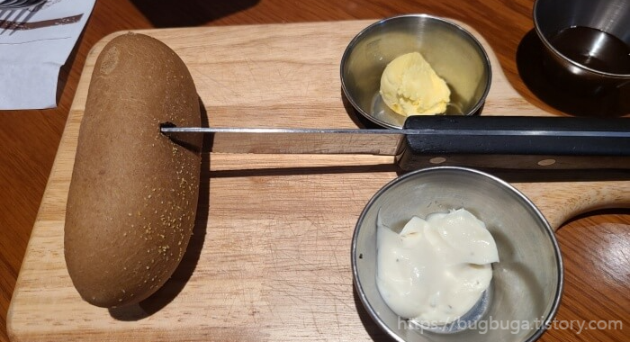 마지막으로 식사가 끝나기 전에 메니져에게 말씀하시면  망고스프레드 소스와 함께 부시멘브레드 2개 선물로 받을 수 있습니다. 매니져분이 좋으셔서 전 3개 받았습니다. 잘 먹겠습니다^^.