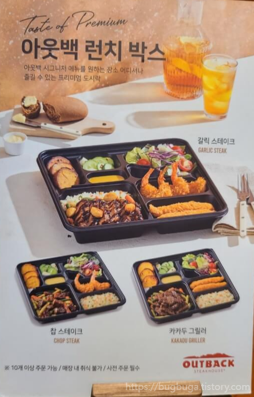 아웃백 런치박스도 주문가능합니다만 점심에만 가능하다고 합니다. 한번 런치박스도 먹어 보고 싶군요.