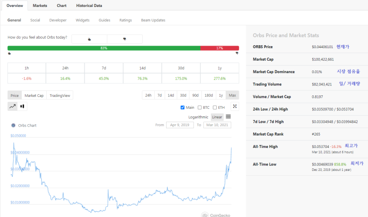 출처 : 코인게코 https://www.coingecko.com/en/coins/orbs